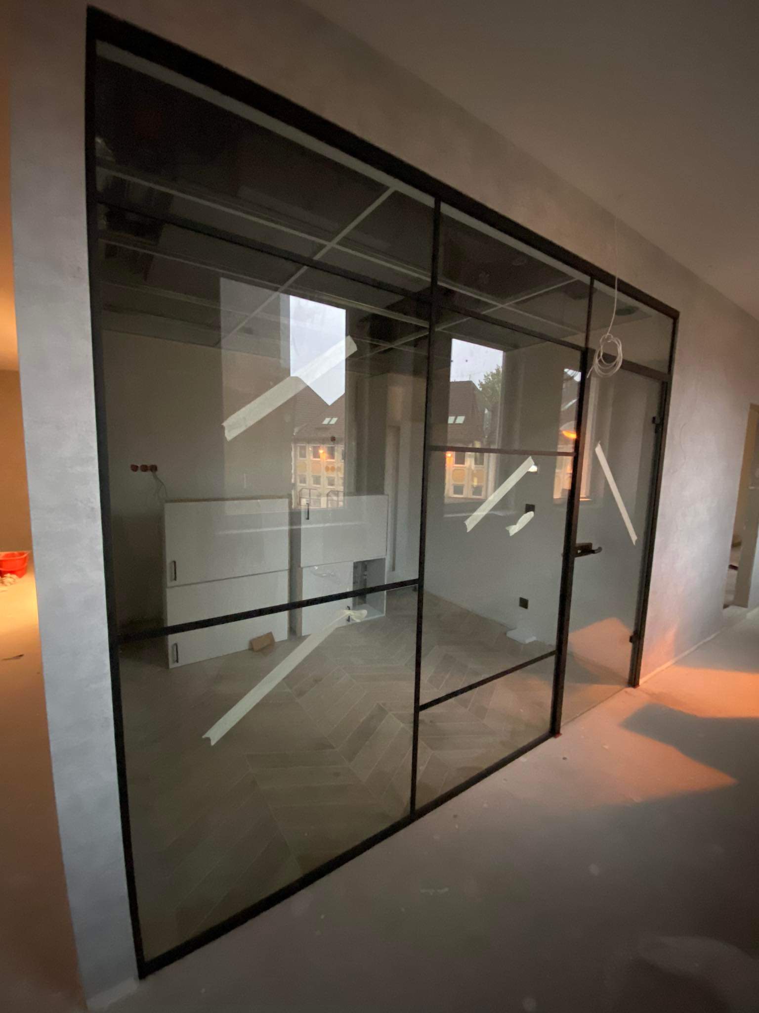 Beltéri extra méretű üvegfalak beépítése Apartmanokban üvegfalak, üvegajtók beépítése - 250 m2